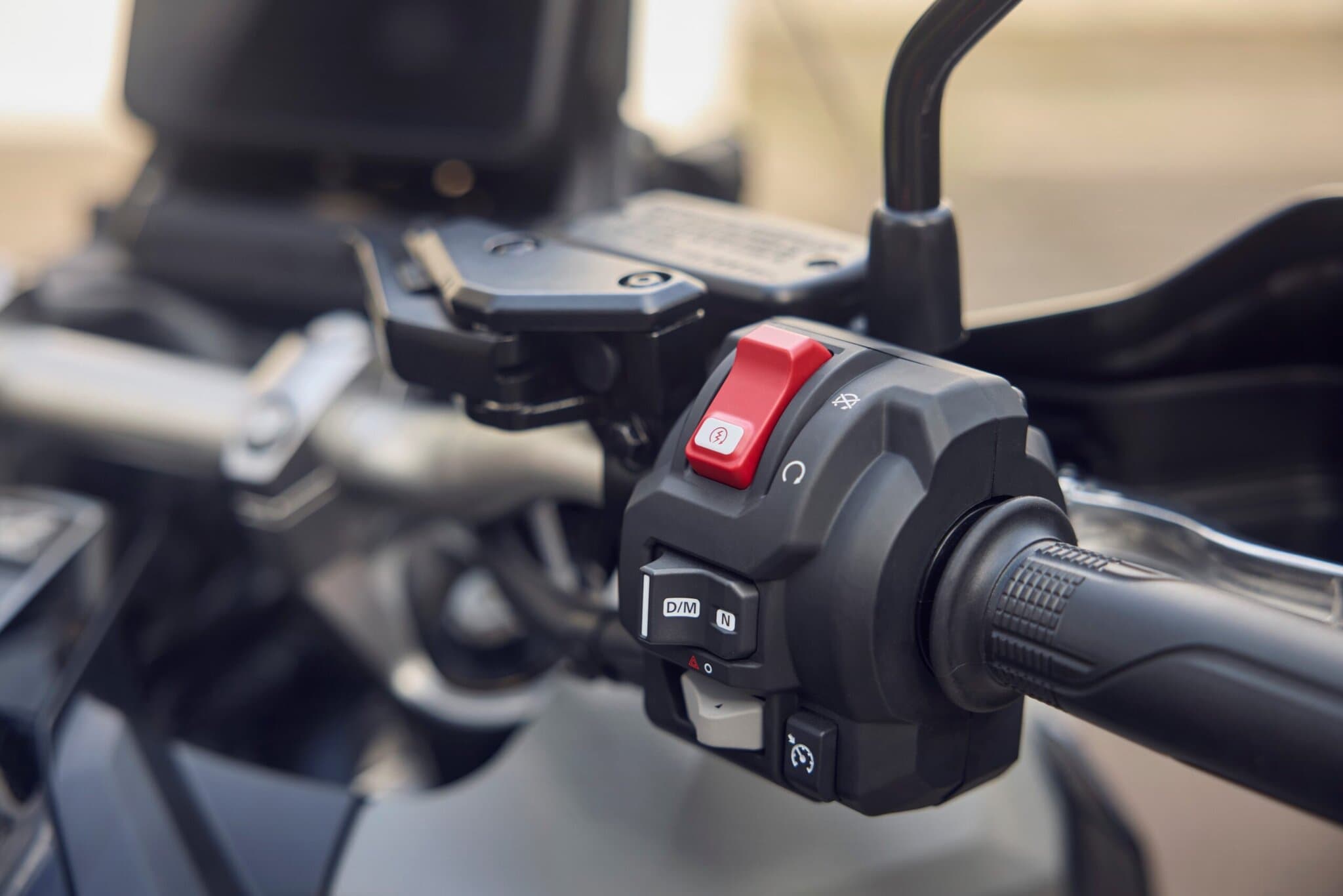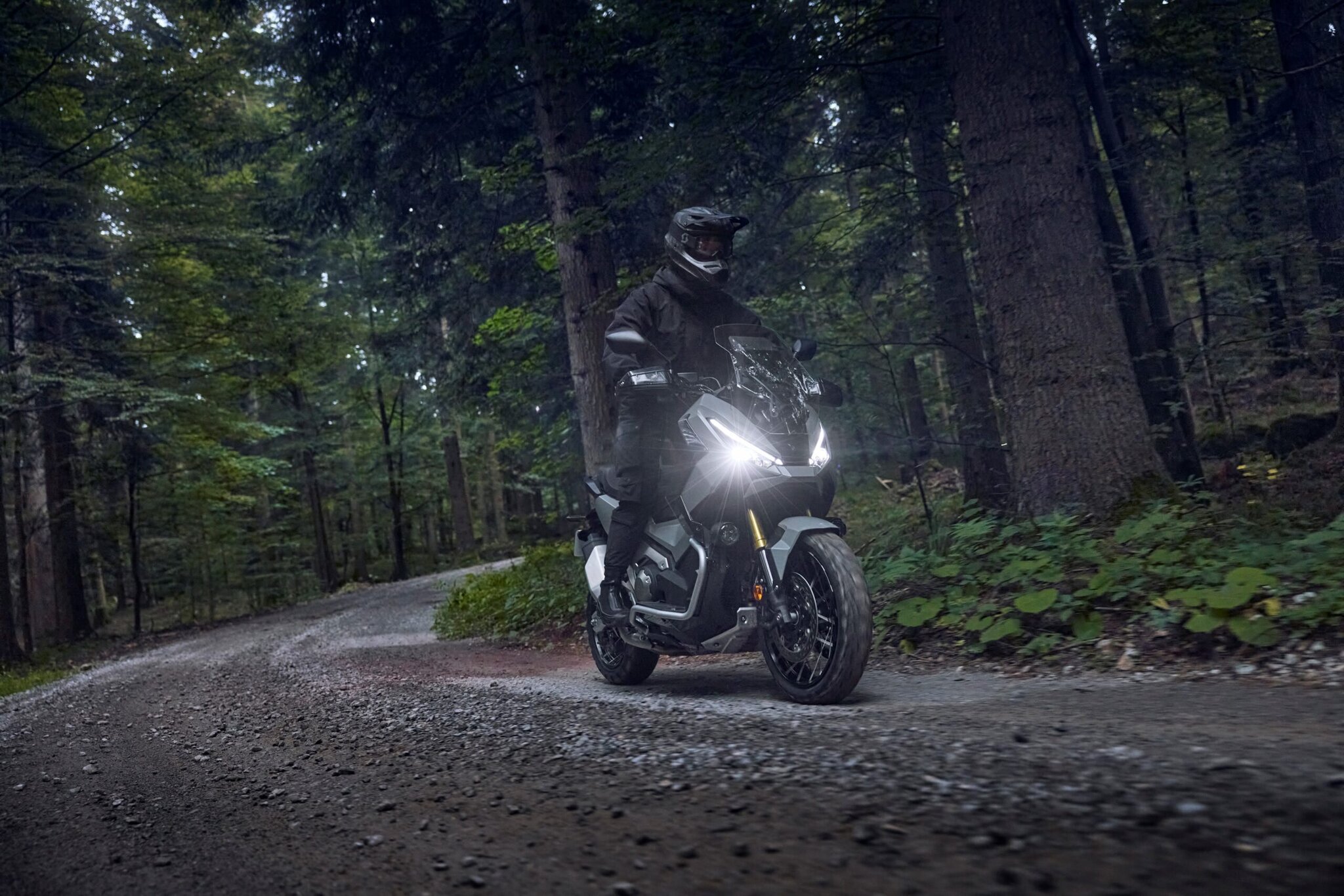 Zdůrazňuje terénní ambice modelu X-ADV předními mlhovými světly, předními bočními trubkami, černými nástavci chráničů rukojetí a stupačkami pro jezdce.